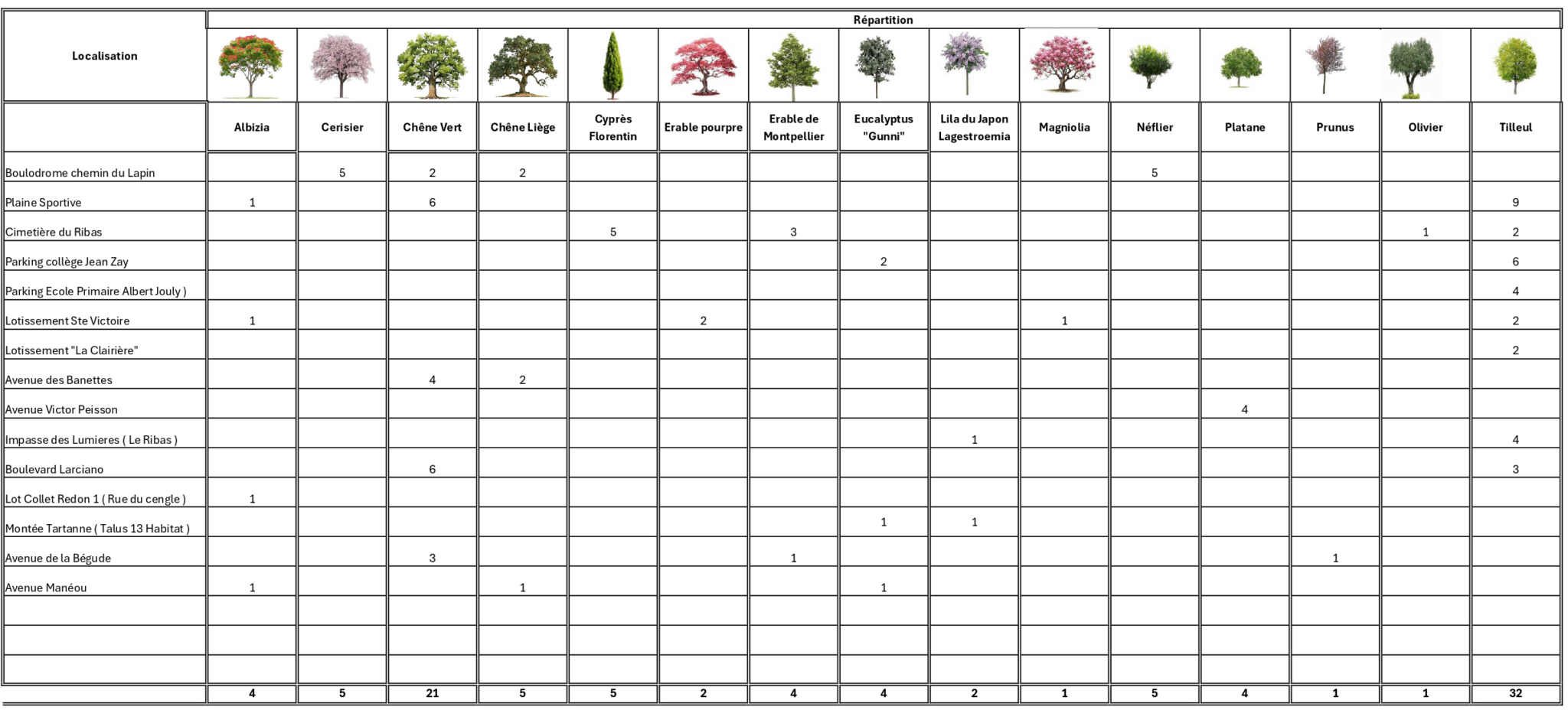 Les emplacements stratégiques dans la commune ont été identifiés et les essences les plus adaptées au climat de notre région ont été sélectionnées.